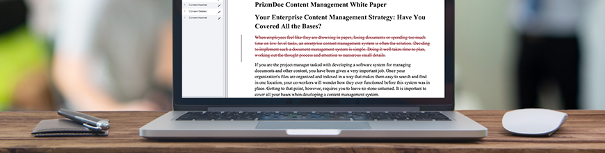 Accusoft’s PrizmDoc Viewer features a powerful document comparison API that allows users to programmatically compare documents within an HTML5 viewer. Capable of tracking thousands of changes over hundreds of pages, PrizmDoc Viewer can also be used to view, share, and annotate the most up-to-date version of a document to facilitate easy collaboration. Rather than relying on external word processor dependencies that could expose files and sensitive data to risk, contributors can instead manage access within their application to maintain control and prevent unauthorized distribution or copying of files.