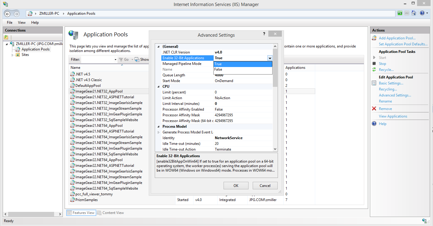 If you are receiving a “80040154 Class not registered (Exception from HRESULT: 0x80040154 (REGDB_E_CLASSNOTREG)).” error while trying to use the LDK on a website created through IIS, it is likely because of a platform conflict (x32 vs x64). To fix it, try checking (or unchecking) “Enable 32-Bit Applications” for the App Pool associated with the website.